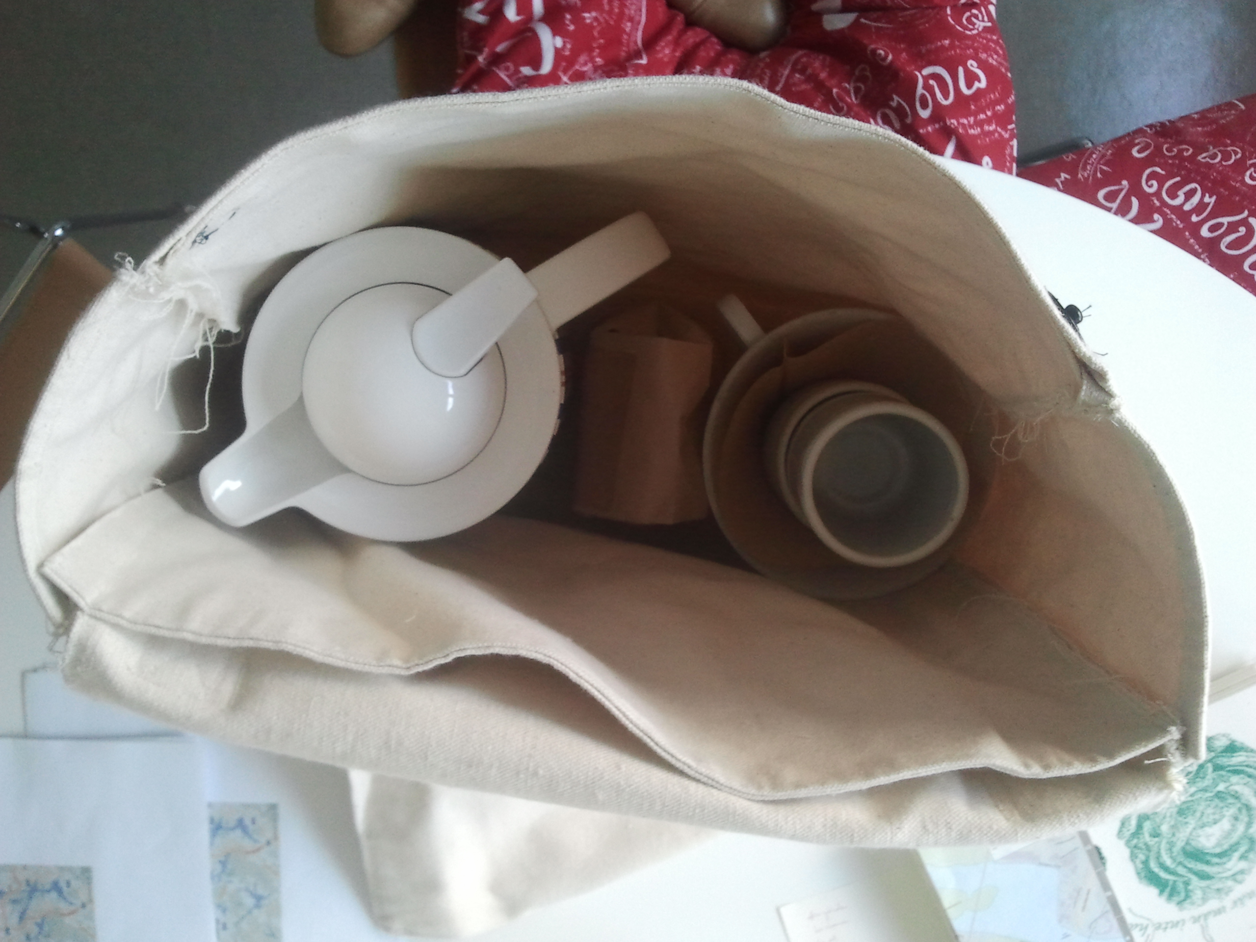 We’ll leave hand-made cups by Jessica Niello and Amanda Eicher with the people we meet, as well as tea or coffee from Four Barrel coffee and the Imperial Tea Court.